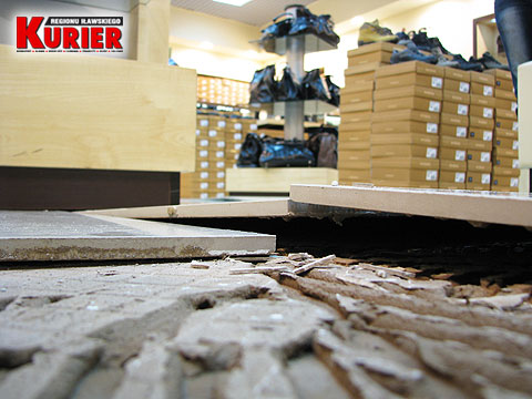 Odstające płytki w sklepie obuwniczym